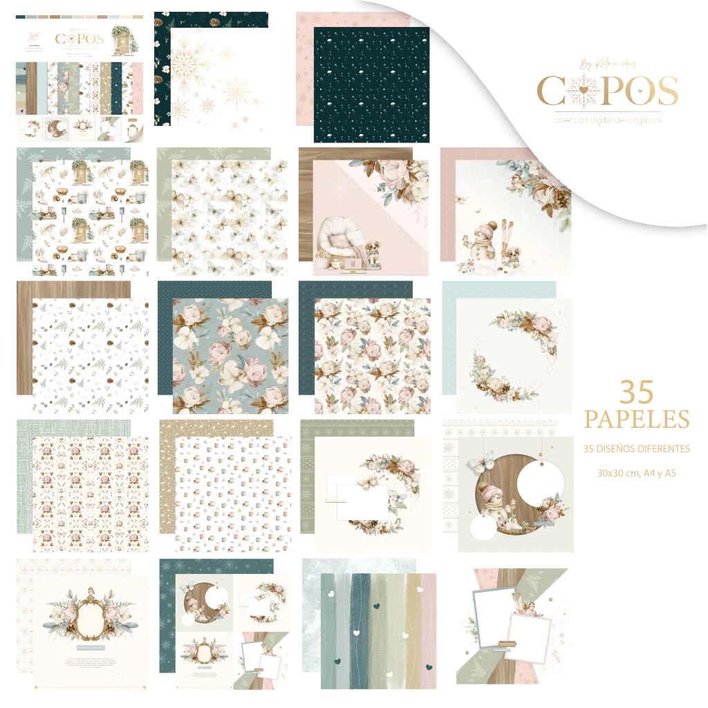 - 30 papeles digitales en formato A4, 30x30cm Y A5 que se entregan en formato PDF Y JPG en alta calidad 300 dpi.