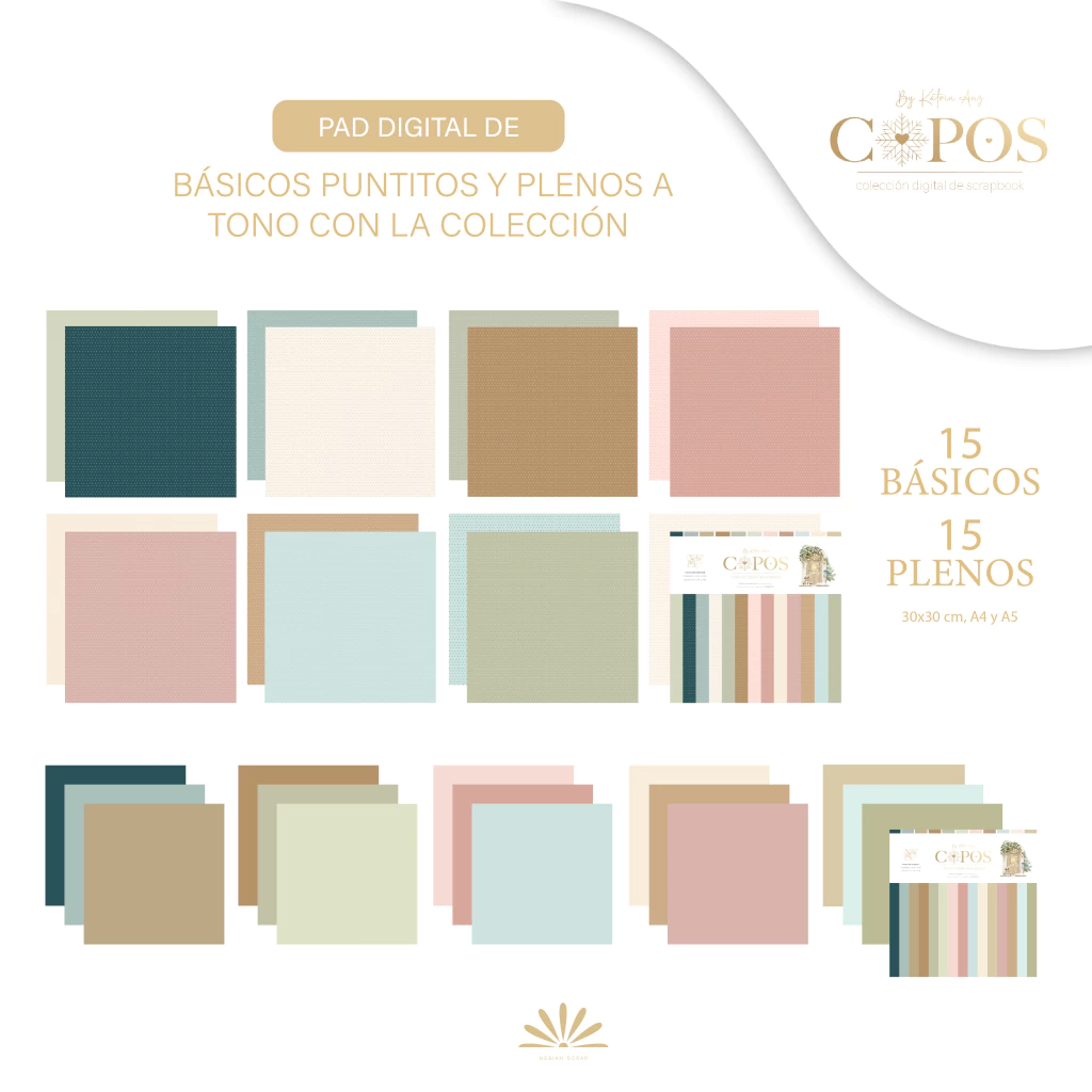 - Pad digital de plenos de color en todos los colores de la colección. Todos en tamaño A4, A5 y 30x30 cm. En formato JPG y pdf alta calidad.